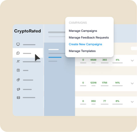 With Cryptorated.io, collecting crypto user feedback is effortless. Send personalized review requests across email, social, or platform dashboards — turning feedback collection into a seamless experience that drives authentic, high-quality insights from your real crypto community.
